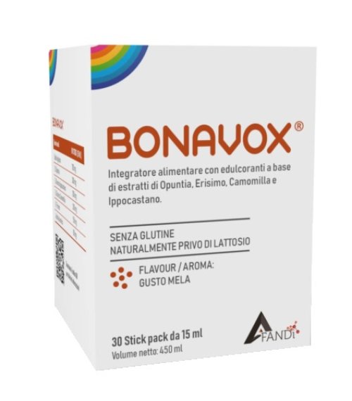 Bonavox è un integratore alimentare a base di estratti di opuntia, erisimo, camomilla e ippocastano, con acido ialuronico e sodio alginato. La camomilla e l’opuntia svolgono un’azione emolliente e lenitiva sul sistema digerente.