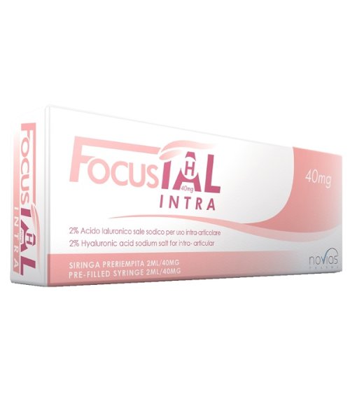 Sostituto del liquido sinoviale che, grazie alle sue proprietà viscoelastiche e lubrificanti, favorisce il ripristino delle condizioni tecnologiche delle articolazioni alterate in pazienti con osteoartrite degenerativa. Il prodotto, migliorando le caratteristiche del liquido sinoviale, esercita un'azione protettiva sulle articolazioni con conseguente miglioramento della funzionalità articolare e la riduzione della sintomatologia dolorosa. Focusial intra M agisce solo a livello dell'articolazione in cui viene iniettato, senza esercitare nessuna azione sistemica.