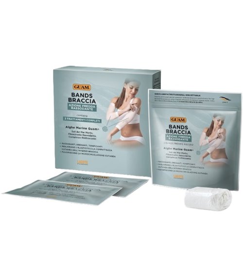Bands braccia. Azione fredda rassodante contiene 3 trattamenti completi Sostanze funzionali: alghe guam: Laminaria digitata e fucus vesiculosus. L'estratto acquoso di Alga laminaria è ottenuto con un processo di bioliquefazione enzimatica che permette di recuperare i suoi principi attivi in un fitocomplesso altamente disponibile e dal potere antiossidante 3 volte maggiore rispetto all'estratto tradizionale, per una protezione efficace contro lo stress ossidativo causato dall'esposizione agli agenti esterni. L'estratto glicerico del Fucus vesiculosus ha un'azione idratante e ammorbidente e proprietà astringenti, disarrossanti, tonificanti e deodoranti. Favorisce la vasodilatazione dei piccoli vasi, cosa che facilita la penetrazione attraverso la pelle dei suoi principi attivi. Fitoestratto rassodante: ippocastano, fieno greco, luppolo, edera, equiseto, amamelide, achillea. Composto ottenuto con un sistema d'estrazione ad ultrasuoni a bassa temperatura, che permette di massimizzare l'efficacia di complessi bioattivi vegetali; grazie alla sua composizione bilanciata svolge un'azione sinergica dalle spiccate attività rassodanti e drenanti. Sali del mar morto: sale estratto dall'omonimo mare sulle coste della giordania. Le acque del mar morto racchiudono la più alta e varia concentrazione al mondo di minerali; questo rende il sale un concentrato unico di materie prime eccellenti, come magnesio, potassio, calcio, sodio, bromo, note per le loro proprietà per il benessere e la salute della pelle. I sali del mar morto agiscono tramite il meccanismo di osmosi, processo che è alla base delle straordinarie proprietà depurative e drenanti dei sali. Complesso rinfrescante: l'associazione di mentolo e menthyl lactate genera una sensazione di freddo utile per dare tonicità e compattezza alla pelle delle braccia.