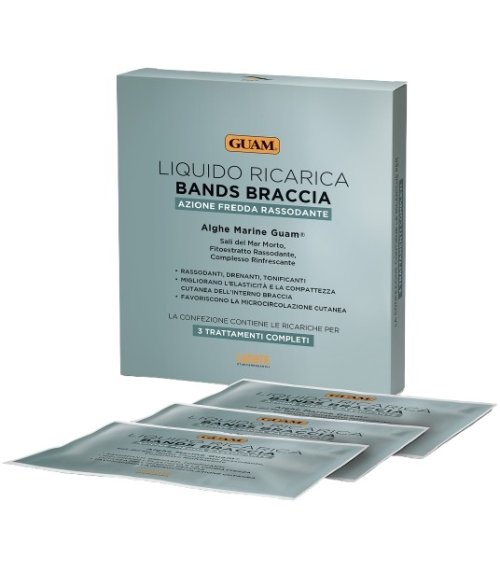 Liquido ricarica bands braccia, azione fredda rassodante. Alghe marine guam, sali del mar morto, fitoestratto rassodante e complesso rinfrescante.