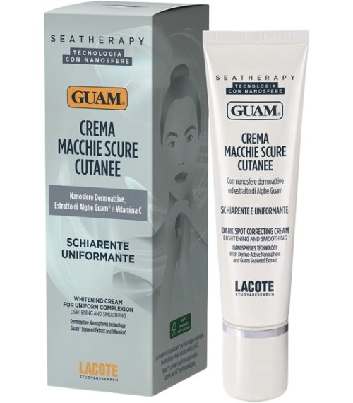 Crema macchie scure cutanee. Agisce sulle macchie scure cutanee dovute all'età, allo stress e alla prolungata esposizione ai raggi solari, schiarendole naturalmente e prevenendone la ricomparsa. La sinergia tra gli attivi schiarenti, nanosfere dermoattive, estratto di alghe guam e vitamina C svolge un'azione enzimatica sulle macchie contrastando il rilascio di melanina da parte dei melanociti, per una pelle più luminosa e compatta.