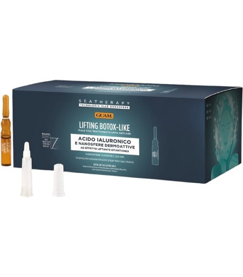Il trattamento lifting botox-like si avvale della tecnologia alle nanosfere che permette di veicolare i principi attivi nello strato più profondo del derma, massimizzandone l'efficacia per ottenere risultati diretti. Il trattamento seatherapy lifting botox-like contiene acido ialuronico a basso peso molecolare e nanosfere dermoattive i cui peptidi arrivano esattamente dove servono per una mirata azione liftante immediata. Tra i principi attivi del prodotto sono stati inseriti, per un forte potere antiossidante contro i radicali liberi, l'estratto bioactivity di alghe marine guam e la vitamina C. La formulazione del siero così risultante è ricca di principi attivi e senza acqua aggiunta. Questo trattamento ha la duplice funzione di liftare la pelle e di promuoverne in profondità l'elasticità e il tono, con un effetto anti-età immediato e il risultato di ritrovare pelle più distesa, attenuazione delle rughe, nuova luminosità.