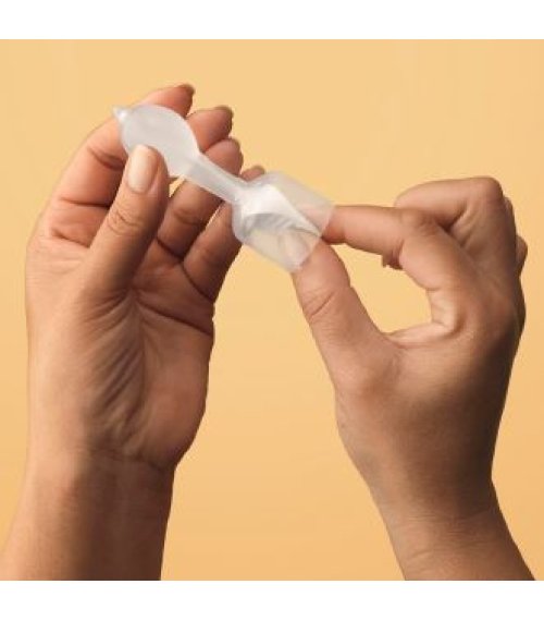 Rilassare i muscoli e inserire delicatamente l’inserto per incontinenza fecale fino a quando il fermo non poggia sull’ano. Estrarre l’applicatore e gettarlo insieme alla confezione con i rifiuti indifferenziati. Lavarsi le mani.