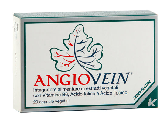Integratore alimentare a base di acido lipoico, piridossina (vitamina B6), acido folico (vitamina B9) ed estratti vegetali secchi di centella asiatica, aesculus hippocastanum, allium sativum, ginkgo biloba, andrographis paniculata e vitis vinifera, utile per colmare le carenze o gli aumentati fabbisogni di tali nutrienti. Angiovein fornisce un apporto di nutrienti quali centella asiatica, gingko biloba, aesculus hyppocastanum e vitis vinifera utili per favorire la funzionalità del microcircolo. La composizione è anche caratterizzata dalla presenza di gingko biloba, allium sativum e vitis vinifera, piante note per il loro effetto antiossidante, utili per contrastare l'azione dei radicali liberi.Senza glutine.