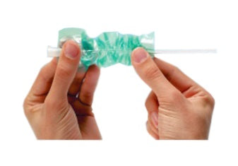 La guaina No-Touch rappresenta anche l'involucro con confezionamento del catetere.