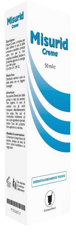 Misurid Crema è indicata per dare sollievo in casi di pelle arrossata e sensibile: i principi attivi, noti per le loro proprietà emollienti, lenitive e protettive agiscono in sinergia con i fi ltri solari. Con ltri UV - SPF 25.