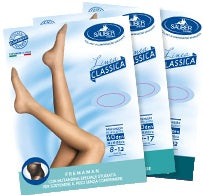 Collant a compressione graduata in multifibra con tassello anteriore estendibile, studiato per sostenere il peso del ventre senza comprimere, seguendo l'evolversi della gravidanza. La particolare mutandina a pantaloncino è rinforzata ed anatomica sulla parte posteriore e sui fianchi.